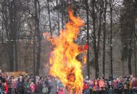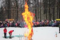 Ярким зрелищем на празднике стал Масленичный поезд – участники творческих коллективов вместе с русской печкой прошли по парку, зазывая коломенцев на проводы зимы, а кульминацией стало традиционное сожжение трехметрового чучела Масленицы.