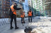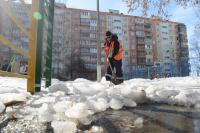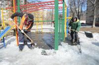 Главная задача на ближайшие дни - убрать остатки наледи на детских и спортивных площадках, возле пешеходных зон и мест отдыха.