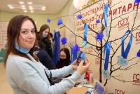 Студенты – будущие социальные психологи – рассказали своим сверстникам о проблеме аутизма, раздали информационные буклеты и символические браслеты. Работал аквагрим и выставка рисунков детей с РАС. Любой желающий мог написать на листочке слова поддержки в адрес особенных людей и повесить его на «Дерево желаний».