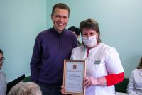 Никита Чаплин передал сотрудникам Непецинской поликлиники слова благодарности от имени губернатора Московской области за слаженную работу в период пандемии и вручил им награды Московской областной Думы.