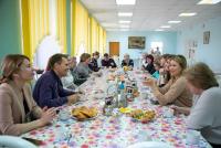 На мастер-классе по поделкам Никита Юрьевич встретился с воспитанниками, а потом за чашкой чая состоялась беседа с коллективом.