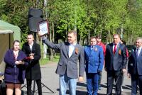 В рамках патриотической акции участники посетили памятные места Коломны Озер, возложили цветы к мемориалам. На каждом маршруте происходила раздача символа Дня Победы – «Георгиевской ленточки».
