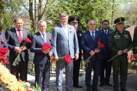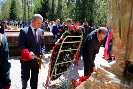 В память о погибших на полях сражений в годы Великой Отечественной войны, умерших от ран и болезней в госпиталях и не доживших до сегодняшнего дня, была объявлена Минута молчания. К мемориалу возложили венки и цветы. Митинг завершился оружейным салютом.