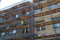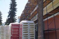 Работы по ремонту кровли ведутся постепенно: сначала выполняется демонтаж участка кровли, затем его гидроизолируют и покрывают новым материалом. После приступают к работе на новом участке. Фасад перед покраской утепляется. После завершения ремонта будет выполнено благоустройство прилегающей к корпусу территории.
