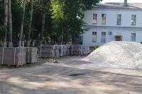 В больничном городке на ул. Октябрьской Революции происходит замена зеленых насаждений и расширяется автомобильная парковка