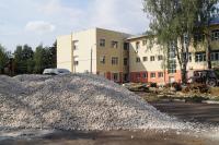 В больничном городке на ул. Октябрьской Революции происходит замена зеленых насаждений и расширяется автомобильная парковка.