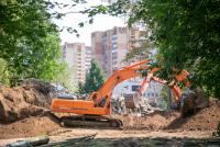— Экскаваторы у нас относительно небольшие, - продолжает Дмитрий Сычиков. - Мы не можем сюда затянуть большую технику, потому что здесь много деревьев. Наша задача их сохранить. А «длиннорукий» экскаватор здесь просто не развернётся.