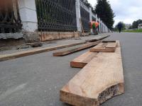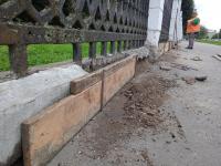 Посетители парка на протяжении двух недель могли наблюдать кропотливую работу сотрудников МБУ "Коломенское благоустройство", которые восстанавливают основание исторической ограды. Фундамент забора местами раскрошился, а где-то и вовсе полностью утрачен.