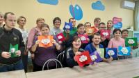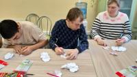 Люди с ограниченными возможностями старательно делали открытки из цветной бумаги. Они остались очень довольны мастер-классом и с удовольствием фотографировались со своими работами.