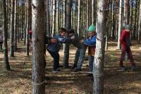 Но занятие есть занятие. Дети и родители вспомнили, как преодолевать препятствия с помощью верёвочных перил, навыки ориентирования в лабиринте, а также поиграли на свежем воздухе в «Городки» и «Вышибалы». Традиционный чай в таком красивом месте казался особенным и необыкновенно вкусным.