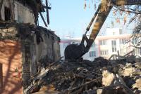 Начались работы по сносу аварийного здания на улице Сапожковых, 18