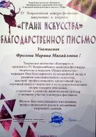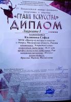 Озерчанка Софья Калинина стала лауреатом степени в IV Всероссийском конкурсе-фестивале творчества и искусств «Грани искусства»