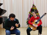 «Думаю, что эти незабываемые моменты общения с этим прекрасным музыкантом и человеком останутся у ребят на всю жизнь! Как выразительно и эмоционально объяснял он ученику каждую фразу исполняемого произведения! Счастливые вы, ребята! нам о таком в вашем возрасте можно было только мечтать, - отметила педагог по классу гитары Ольга Руднева. - А ещё наш дорогой гость порадовал своей игрой, устроив для нас небольшой концерт».