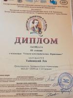 На конкурсе он исполнил два произведения: И.С.Бах Аллеманда из Французской сюиты №2 до минор и К. Лавалле Концертный этюд «Бабочка». Огромная заслуга в успехах юного пианиста принадлежит его педагогу Елене Анатольевне Тайницкой. Эта победа результат упорного труда, целеустремлённости и терпения.