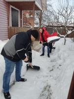Вооружившись инвентарём, молодёжь сразу принялась за дело. Работали слаженно, чётко и организованно. Ребята убрали снег во дворе, расчистили тропинки.