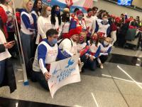 С плакатами #КоломнаКатит встречали в Москве конькобежцев-олимпийцев
