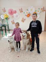 Питомцы Норд и Майями порадовали детишек, показали свои «акробатические» трюки под командованием профессионального специалиста. Благодарные воспитанники подарили сотрудникам предприятия свои улыбки и рисунки с изображением хвостатых гостей центра.
