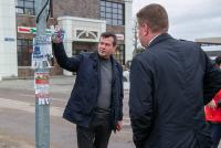 Стартовой точкой обхода стала площадка через дорогу от Запрудского парка. Здесь, на электрическом столбе и на здании местного магазина, глава указал на несанкционированную рекламу. Чуть дальше, пройдя в сторону Старого города, Александр Гречищев обратил внимание на неокрашенные заборы и потрескавшийся фасад зданий. На некоторых участках, которые были по пути, встречался мусор и ямы на дороге.