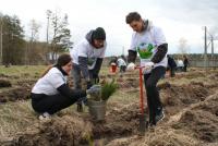 Под живую музыку участники разбились на пары, вооружились инструментами и приступили к делу. Буквально за полтора часа вчерашний пустырь преобразили ровные ряды хрупких хвойных ростков.