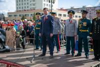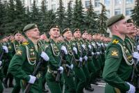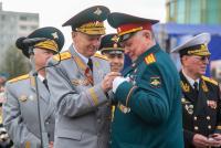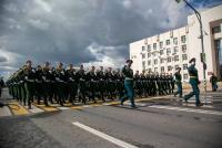 Парадный расчет торжественным маршем прошел под аплодисменты зрителей, а также под звуки военного оркестра, главный дирижер которого заслуженный работник культуры РФ Александр Владимирович Пономарев в этот день был удостоен памятного знака «100 лет военно-оркестровой службы».