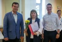 «Спасибо вам за работу, благодаря которой вы даете нам стимул не останавливаться на достигнутом, совершенствоваться и удерживать планку лидера. Вы поистине «золотые» кадры», – обратился к сотрудницам отделения глава муниципалитета. Он наградил благодарственными письмами Ирину Хватову, Анастасию Галактионову и Елену Мачневу – и.о. директора расчётного центра, а в ее лице и весь коллектив.
