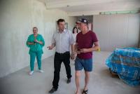 Сейчас на объекте трудятся 47 человек. Ведутся работы по облицовке фасада керамогранитной плиткой, внутри здания выполнена стяжка полов, рабочие штукатурят стены и меняют внутренние инженерные системы: канализацию, отопление, электроснабжение. Строительная готовность – 40 процентов.