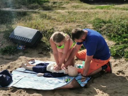 Волонтёр из Москвы, сотрудник подстанции скорой медицинской помощи, провёл мастер-класс по технике оказания первичной помощи пострадавшим в воде. Участниками ознакомительного занятия стали отдыхающие на пляже в микрорайоне Колычёво. С собой у гостя были специальные манекены.