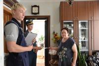 Вот на звонок участников рейда во двор выходит женщина. Надежда Тихоновна насторожённо интересуется целью визита и, убедившись, что перед ней не мошенники, пускает комиссию в дом.