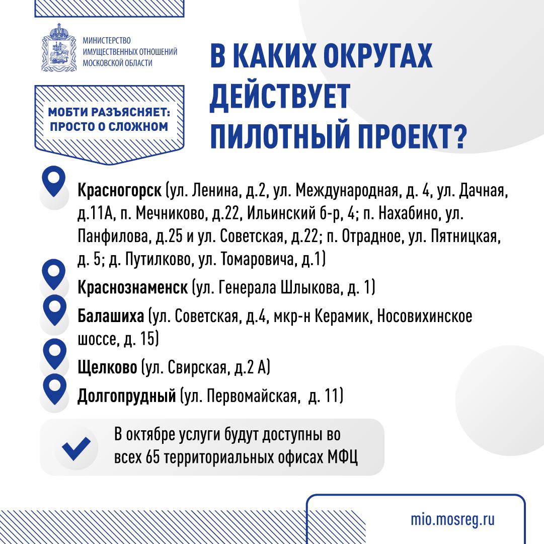 Месяц назад в многофункциональных центрах пяти округах Подмосковья был запущен пилотный проект по предоставлению одних из самых востребованных услуг Московского областного БТИ.