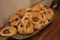 Казалось бы, всего-то вода, мука, соль и хмель для закваски, но приготовление калача – целое искусство со множеством нюансов. День уходит на приготовление закваски, затем замешанное тесто несколько часов держат попеременно то в холоде, то в тепле, после непростая формовка и 20 минут в печи до готовности.