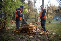 Более 130 сотрудников Департамента городского хозяйства ежедневно убирают опавшую листву во дворах