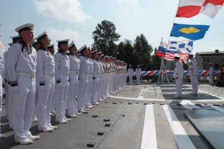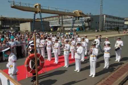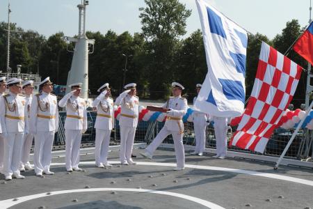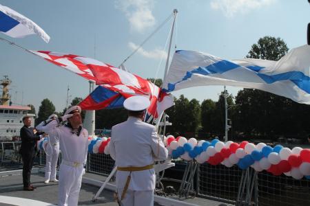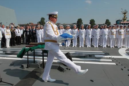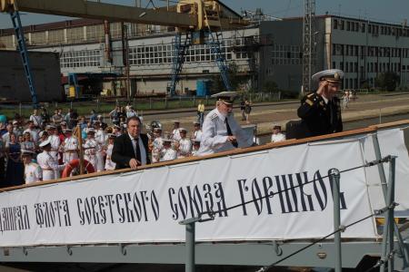 28 июля на судостроительном заводе «Северная верфь» в Санкт-Петербурге прошла церемония подъема Андреевского флага и передача Военно-МорскомуФлоту головного фрегата « Адмирал флота Советского Союза Горшков».