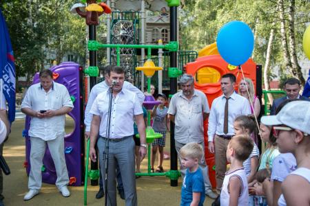 3 августа министр жилищно-коммунального хозяйства Московской области Евгений Хромушин и глава Коломенского городского округа Денис Лебедев торжественно открыли сразу три новые детские игровые площадки, установленные в муниципалитете по программе губернатора Московской области Андрея Воробьева.