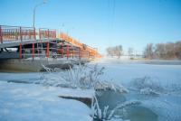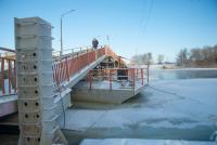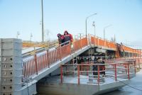 Надо отметить, что пешее движение здесь осуществляется в штатном режиме. Рабочие с регулярной периодичностью посыпают пешеходные подъёмы и спуски песком, чтобы исключить скольжение. Хотя желающих прогуляться по мосту не так уж и много.