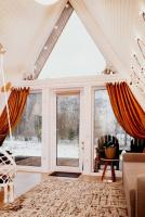 Глэмпинг «Страна Оз» – это комфортные А-домики с панорамными окнами. Они могут похвастаться стильным дизайном, горячей купелью прямо на веранде и всем необходимым для отдыха на природе. Домики оборудованы электрическим конвектором и кондиционером.
