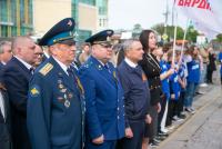 ☭Копию Знамени Победы, что реяло на крыше Рейхстага в 1945 году, подняли под звуки гимна Российской Федерации. Его исполнили музыканты военного оркестра.