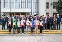 Здесь же стартовала традиционная акция «Георгиевская ленточка». Глава вручил волонтёрским объединениям маршрутные листы и ленты, которые добровольцы будут выдавать в разных точках городского округа. Ребят можно будет встретить в сельских населенных пунктах, в микрорайоне Колычево, Голутвине, на площадях Двух Революций, Советской и Житной, а также на центральных улицах округа. Всего в эти праздничные дни планируют раздать 10,5 тысяч георгиевских лент.