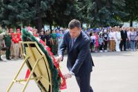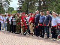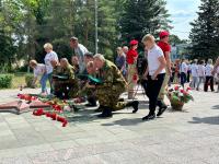 В знак безмерной благодарности к тем, кто сложил головы, защищая Отечество, под музыкальное сопровождение военного оркестра к мемориалу легли алые гвоздики и венки.