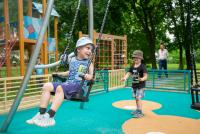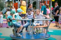 Площадь нового игрового комплекса составляет 300 квадратных метров. Здесь обустроено травмобезопасное покрытие, установлены качели разных видов, комплекс с горками и местами для лазания, карусель, скалодром.