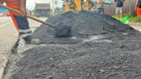 Напомним, что здесь образовался провал грунта. Для начала дорожные рабочие осуществили косметический ремонт, отсыпав яму. Однако вскоре произошёл повторный провал. Специалисты провели более глубокое обследование территории и установили, что нарушение целостности дорожного полотна происходит по причине поломки канализационной трубы. Работы по восстановлению провала осложнялись тем, что аварийные коммуникации принадлежали частному лицу.