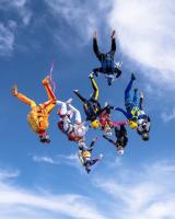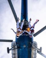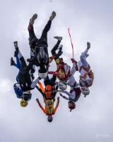 Группа девушек совершила несколько прекрасных фрифлай прыжков. Судьи зарегистрировали два лучших результата: первый рекорд – прыжок 10-ти человек с перестроением в фигуру «сердце», второй – создание такой-же формы, но в группе 11 человек.