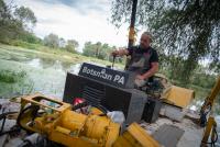 На пруду между деревнями Малое и Большое Карасёво выполняют санитарную расчистку водной глади. Специалисты подрядной организации провели окос камыша вдоль берегов водоёма, выполняют обрезку и уборку сухостоя. Сейчас на водоёме находятся две машины-амфибии с навесным оборудованием. В скором времени сюда приедет ещё одна, которая при помощи специального устройства будет сгонять с поверхности водоёма всю плавающую растительность, а затем удалять её из воды.