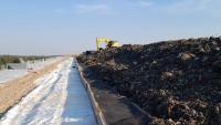 В настоящее время на объекте трудятся 46 человек и 15 единиц техники. Специалисты подрядной организации занимаются устройством подстилающего и выравнивающего слоя верхнего экрана, а также формированием тела полигона.