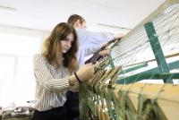 С прошлой недели у импровизированного станка снова кипит работа. В свободное от занятий время студенты переплетают через капроновые нити ленты болотно-коричневых цветов. Задача – сделать так называемые осенние масксети, всего их будет три. Еще две изготовят специально под зиму.