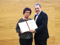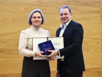 Министр образования Подмосковья Илья Бронштейн вручил Почетную грамоту начальнику образования округа Янине Щегловой.