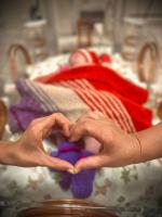 В этот раз в перинатальный центр привезли пледы, шапочки, носочки, руковички и кофточки.