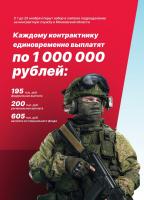 605 000 выплата из специального фонда.В полку контрактникам обеспечат индивидуальную боевую подготовку высшего уровня с опытными инструкторами. Бойцов снабдят лучшей современной экипировкой. Трансфер до Подмосковья из любой точки мира бесплатный. Кроме того, гарантирован особый уровень взаимодействия с близкими и семьями контрактников.