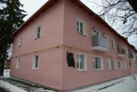 Работы провели с применением системы утепления минераловатными плитами с отделкой тонким наружным штукатурным слоем. Кроме того, в доме отремонтировали козырьки над подъездами, восстановили отмостку, заменили оконные блоки и обшивки балконов. А цвет финальной штукатурки выбирали вместе с жителями, сделали её приближенной к той, которой он был покрашен в последние годы.