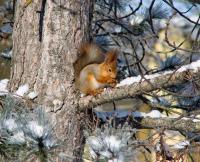 Каждую зиму сотрудники коломенского «Мособлпожспаса» устанавливают кормушки на деревьях, расположенных на территории пожарно-спасательной части. Обычно сюда прилетают полакомиться птицы, но в этом году спасателей удивил другой гость – маленькая белочка.