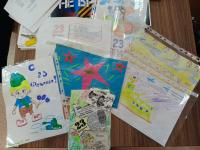 В коробке – чай, кофе, сахар, сигареты, сладости и открытки с теплыми пожеланиями. А еще детские рисунки: многие сотрудники центра участвовали в акции целыми семьями.